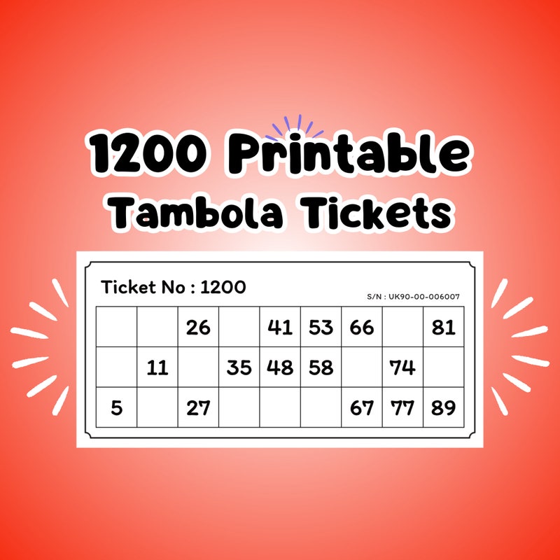 1000 Tambola Tickets Indian Housie Tickets Carte Tambola Printable PDF