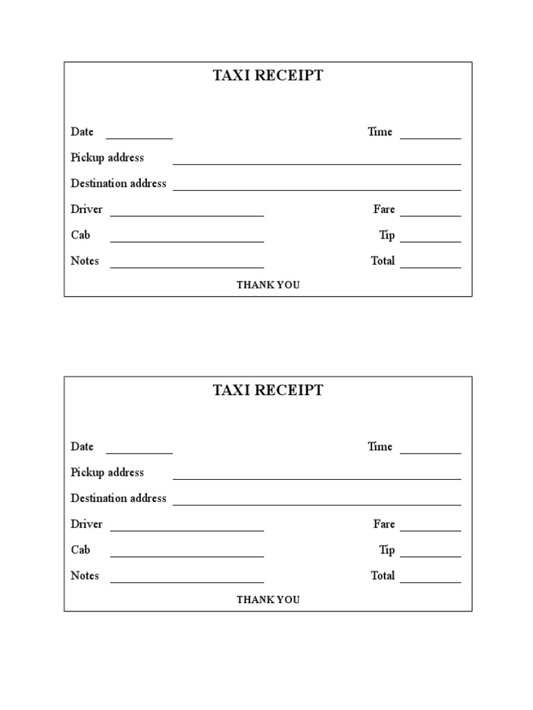 Taxi Receipts Printable