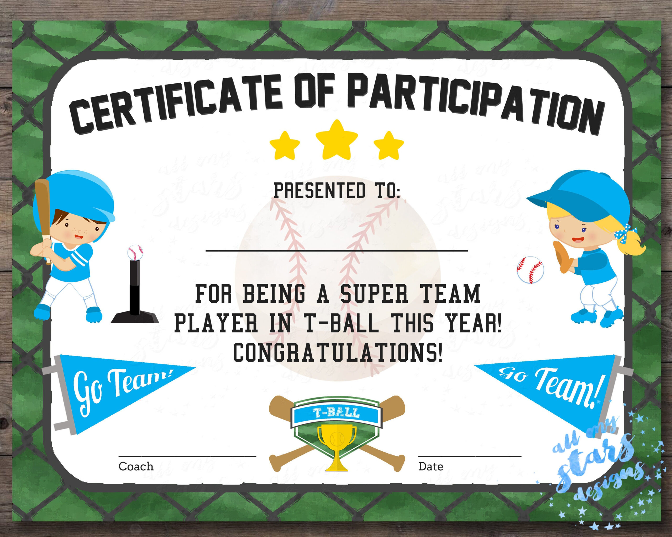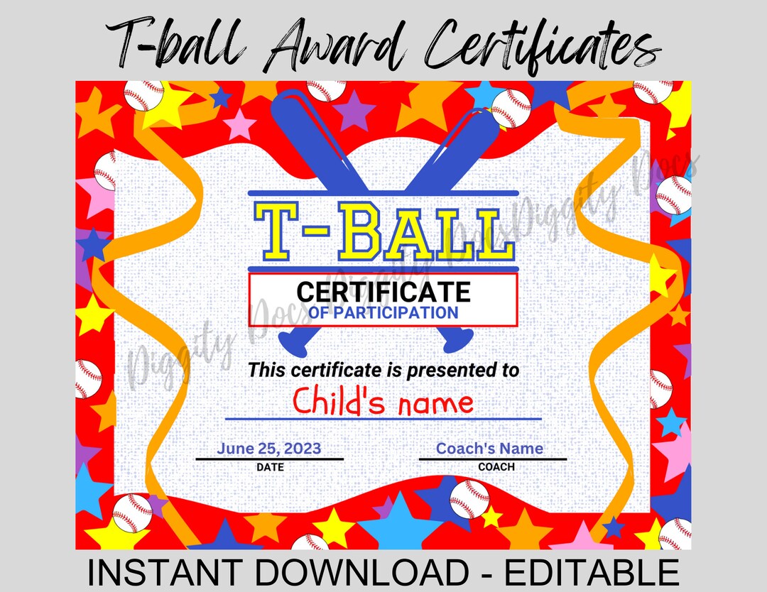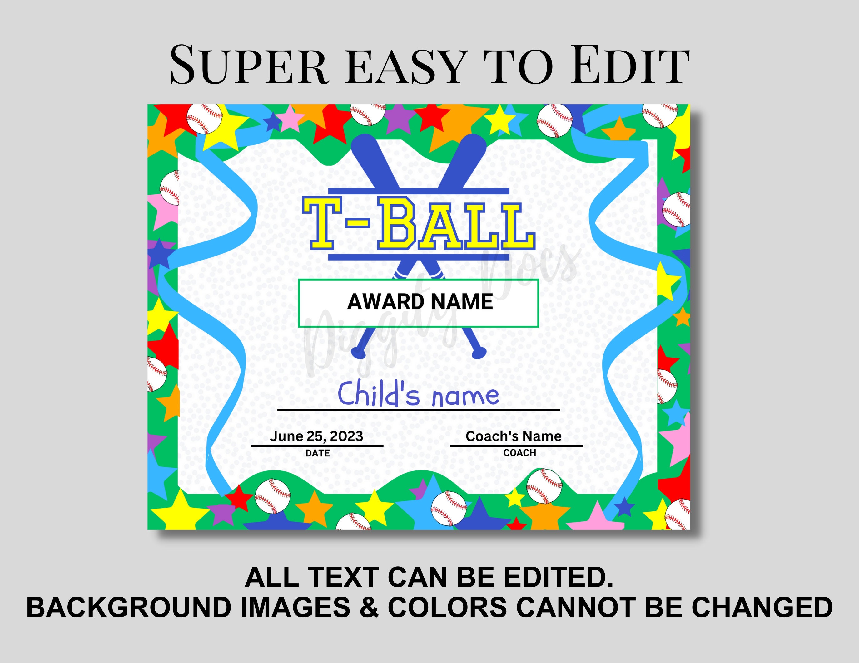 T Ball Certificate Template INSTANT DOWNLOAD Editable Etsy