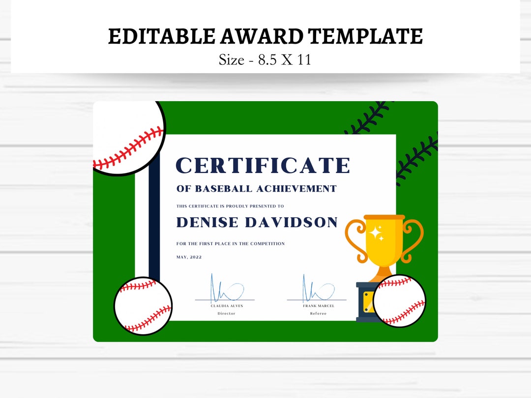 Editable Baseball Award Certificates Baseball Team Awards Baseball