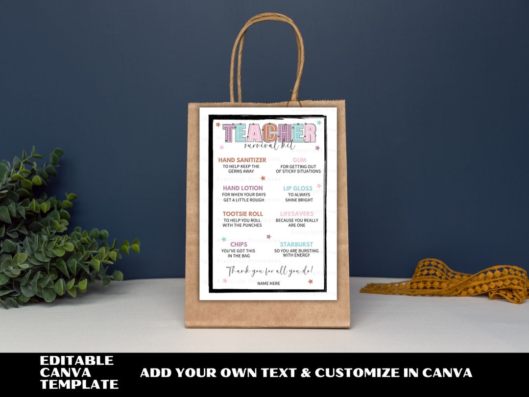Teacher Survival Kit Printable Gift Tag Back to School Gift Ideas for