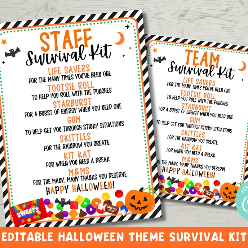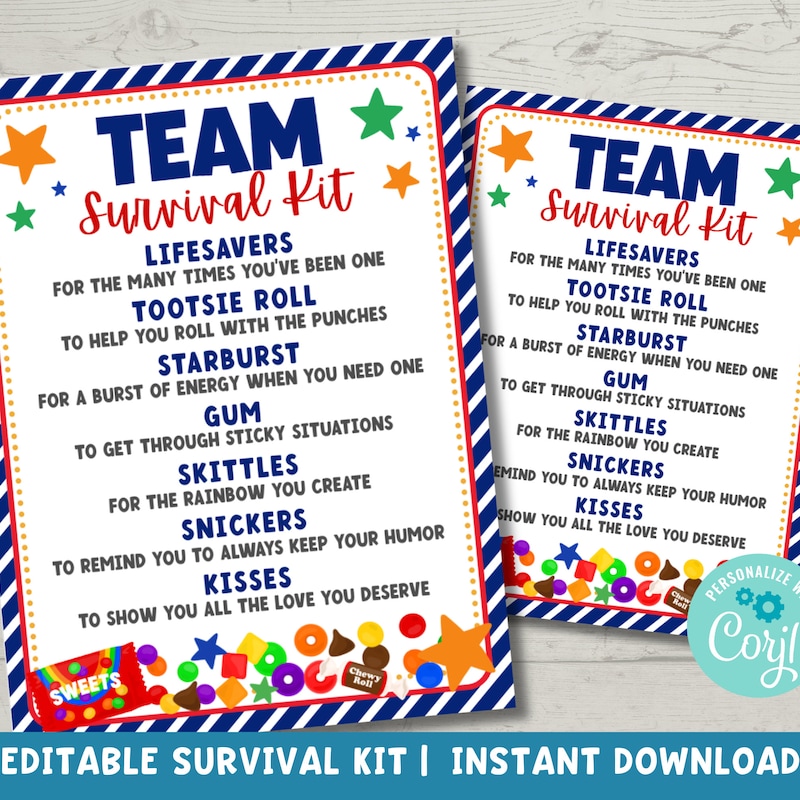EDITABLE Teacher Survival Kit Printable Back to School Teacher Gift