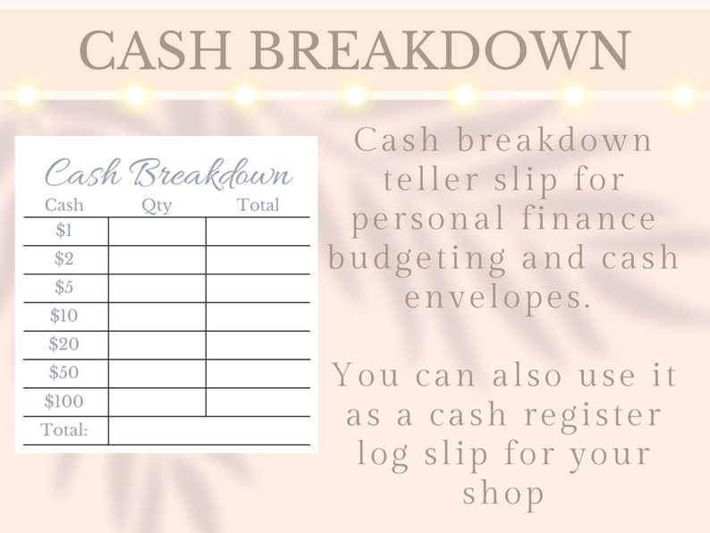 Cash Slip Breakdown Teller Slip Printable INSTANT DOWNLOAD