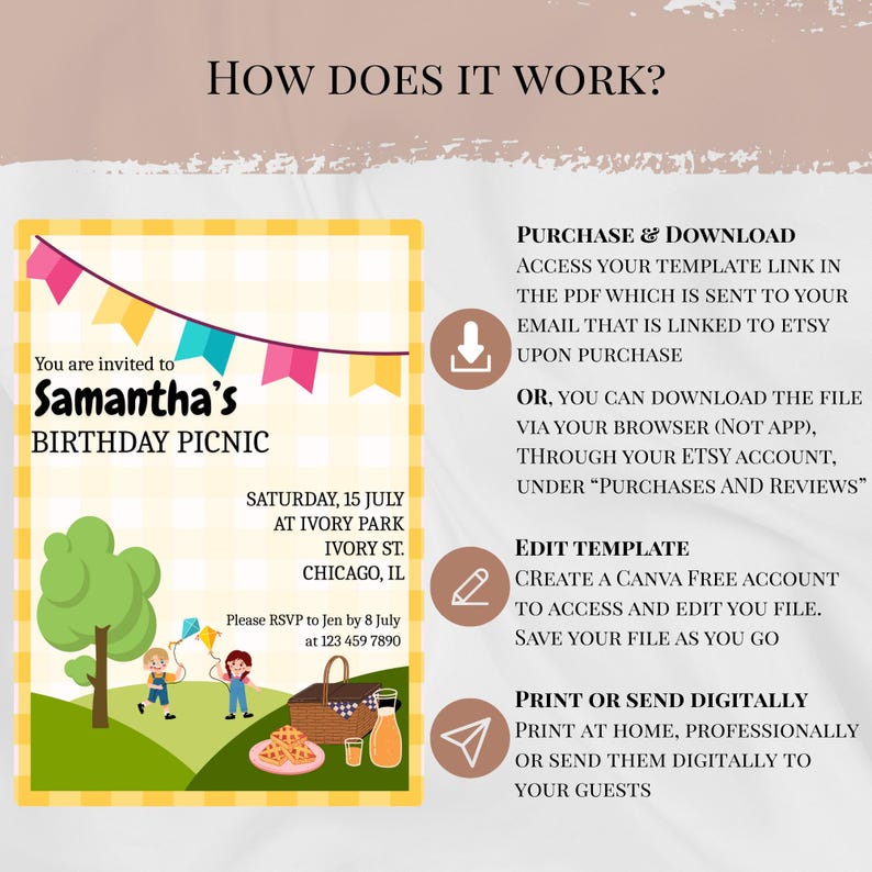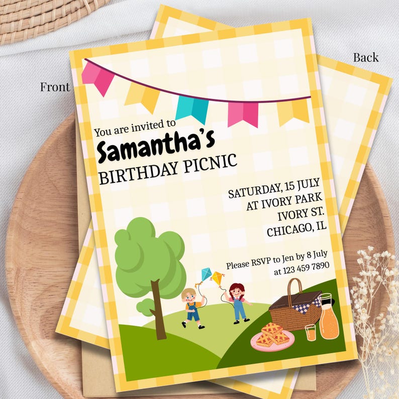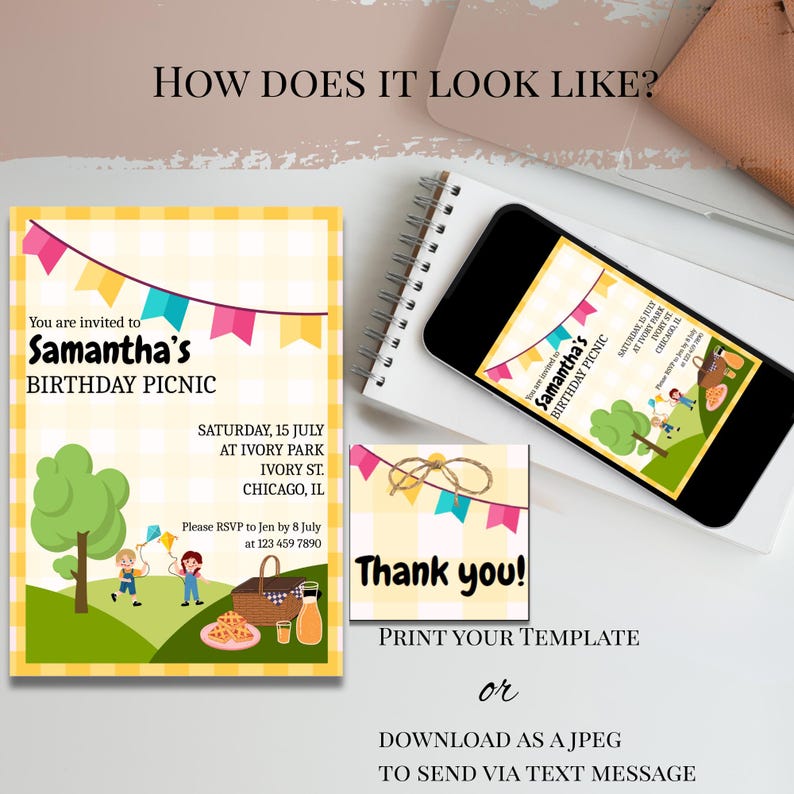 Editable Picnic Birthday Invite Party Invitation Free Thank You Tags