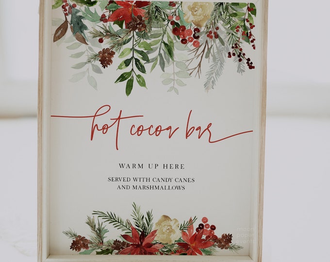 Hot Cocoa Sign Printable Hot Cocoa Bar Vintage Christmas Sign Cozy