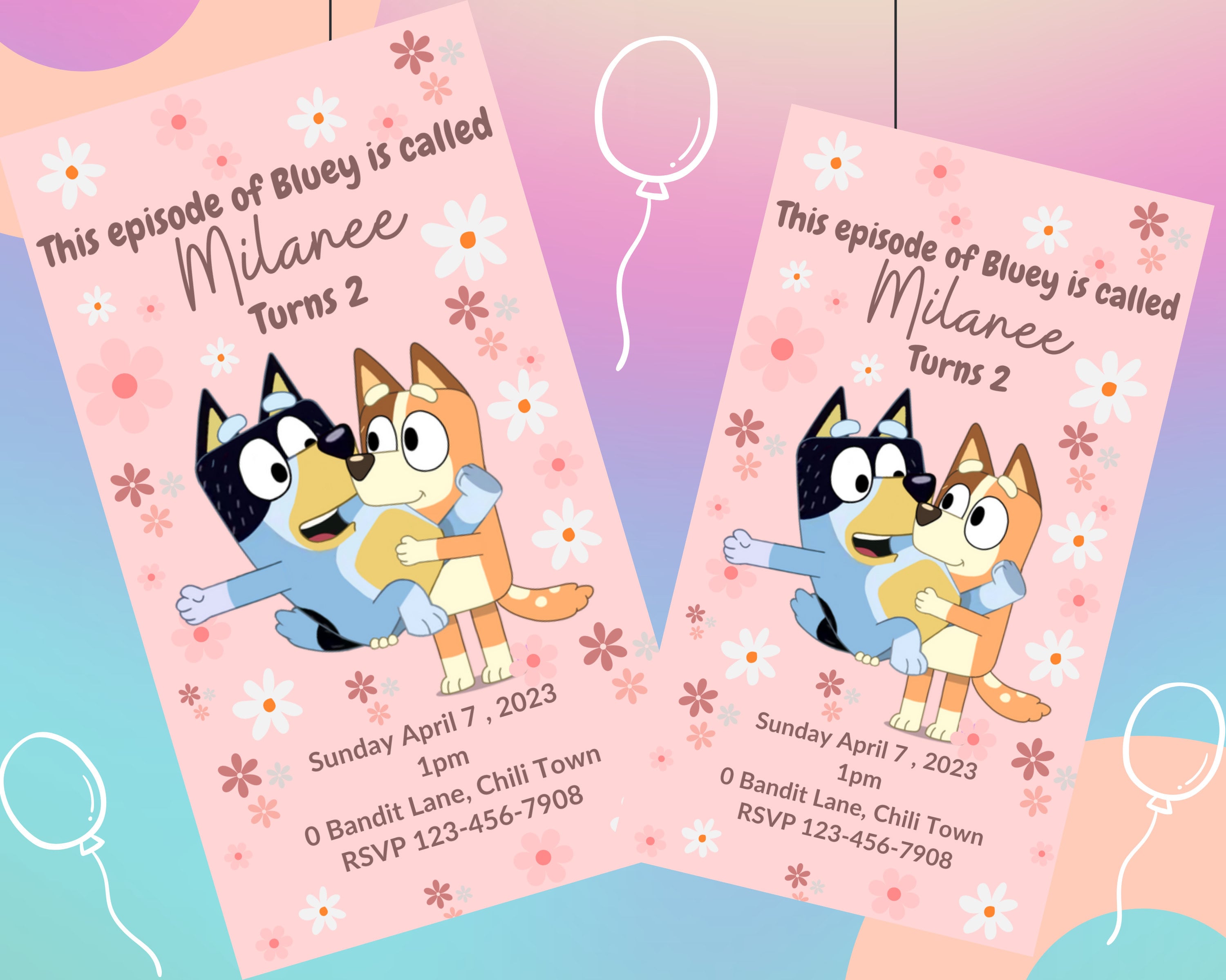 FREE CUSTOM EDIT Bluey Invitation Girls birthday party instant
