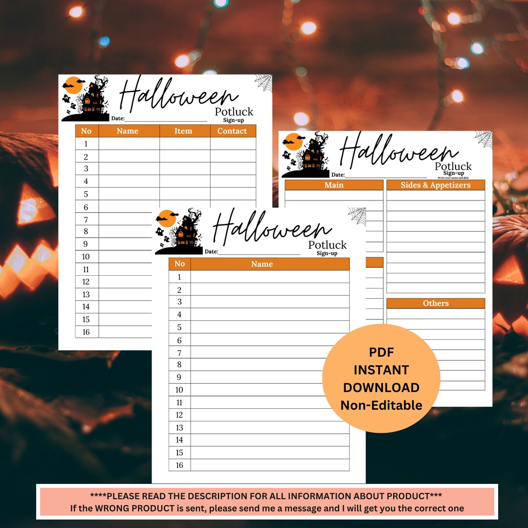 Halloween Potluck Sign up Sheet: Editable Party Form (PNG PDF) Etsy