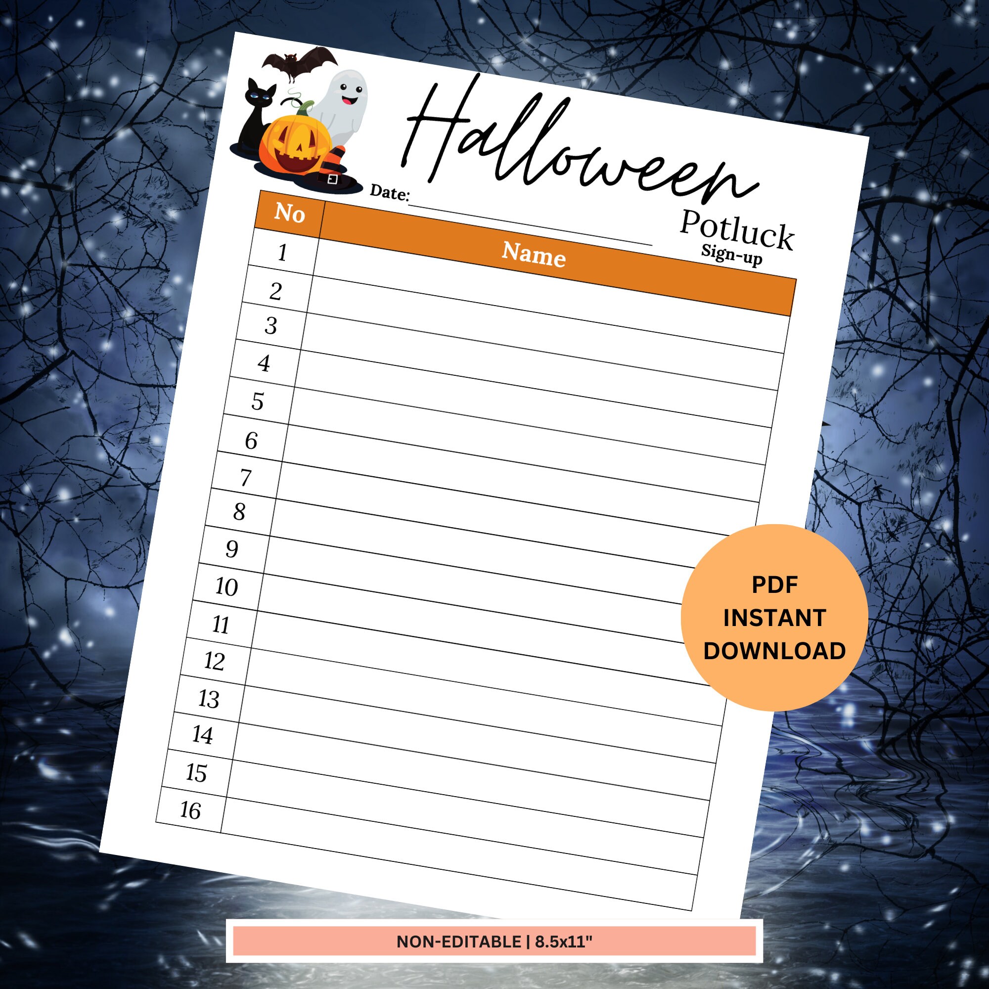 Halloween Potluck Sign up Sheet Printable Letter 01 Etsy