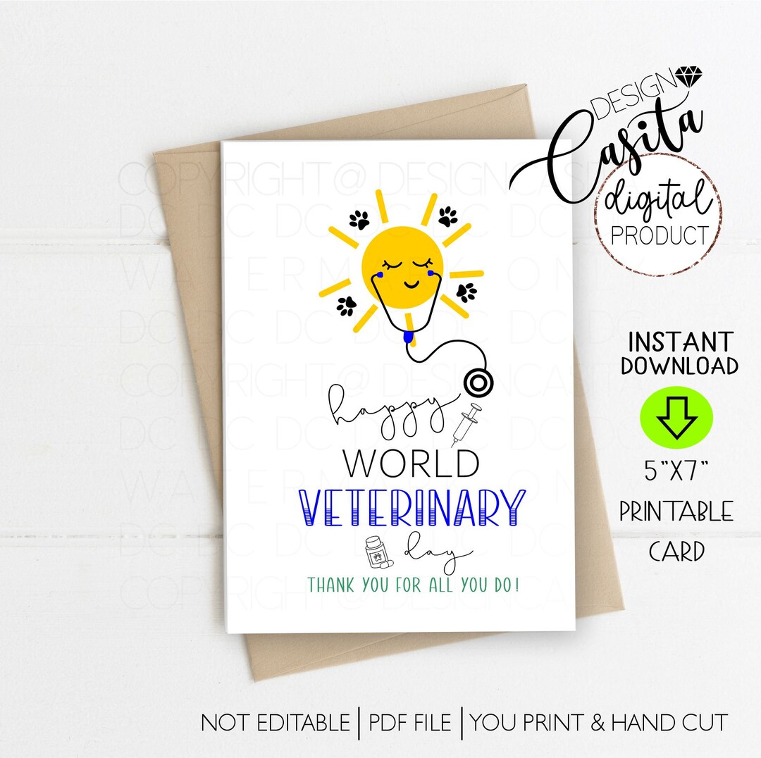 Happy World Veterinary Day Printable 5x7 Folded Greeting Card