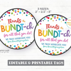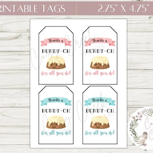 Printable Thanks a Bundt ch For All That You Do Gift Tag PDF Bundt Ca
