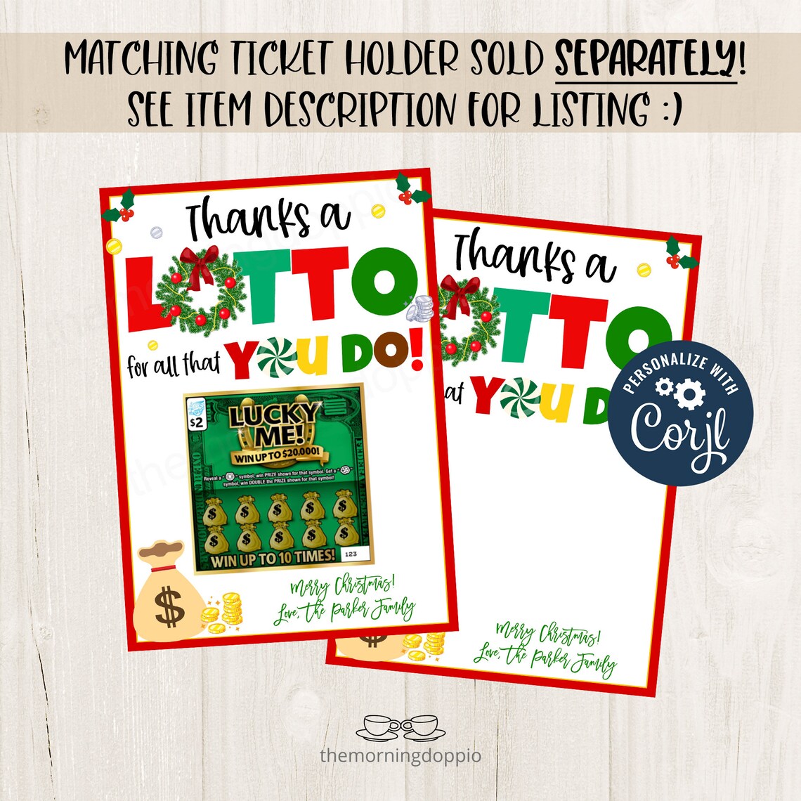 Thanks a Lotto For All You Do Gift Tag Printable 2 lines of Editable
