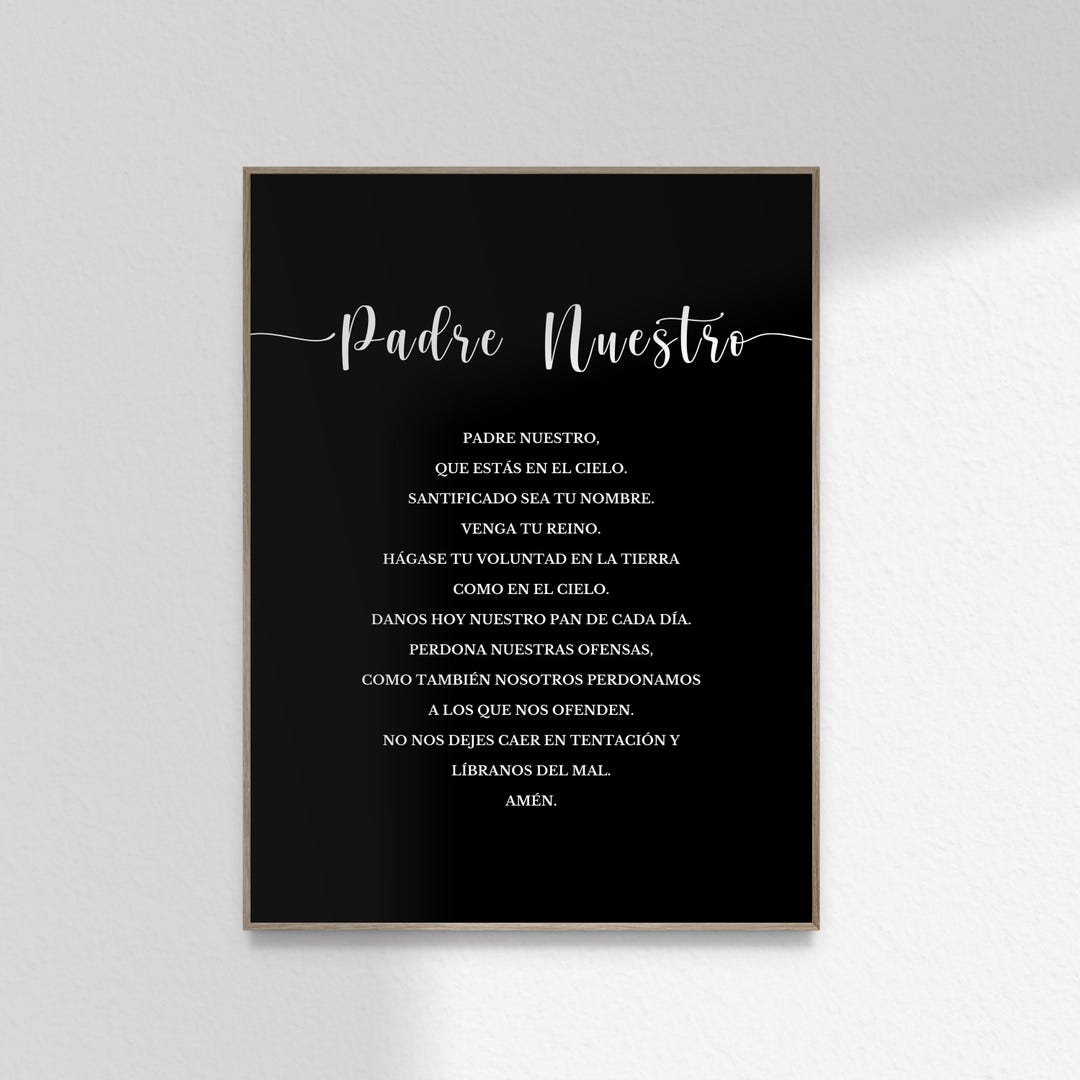 Spanish Lords Prayer Gift Black White Christian Prayer Home Decor Padre