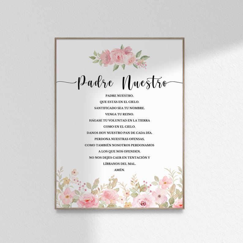 Spanish Lords Prayer Gift Pink Floral Christian Prayer Home Decor Padre