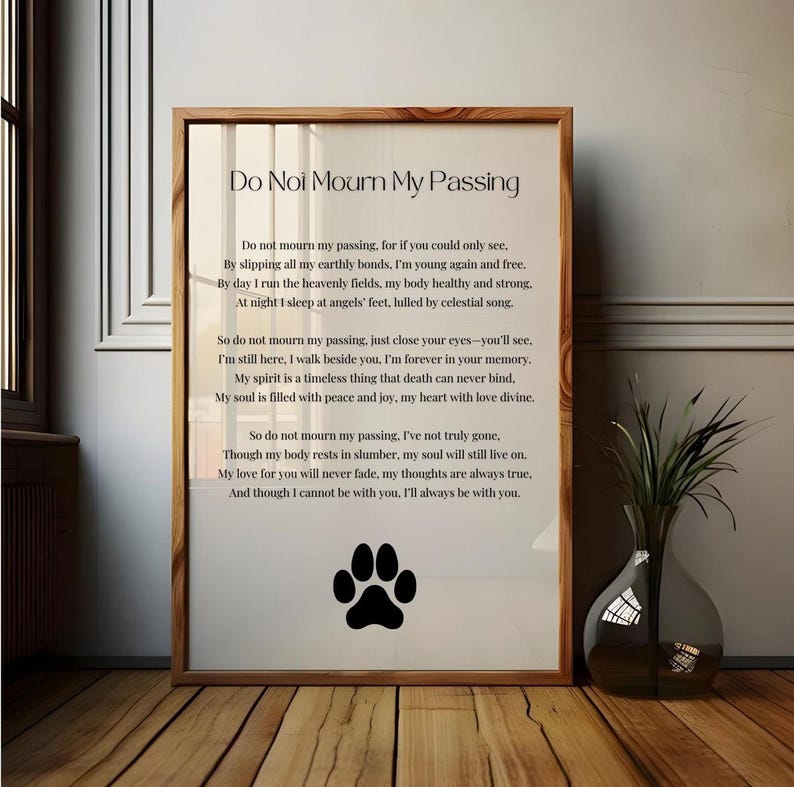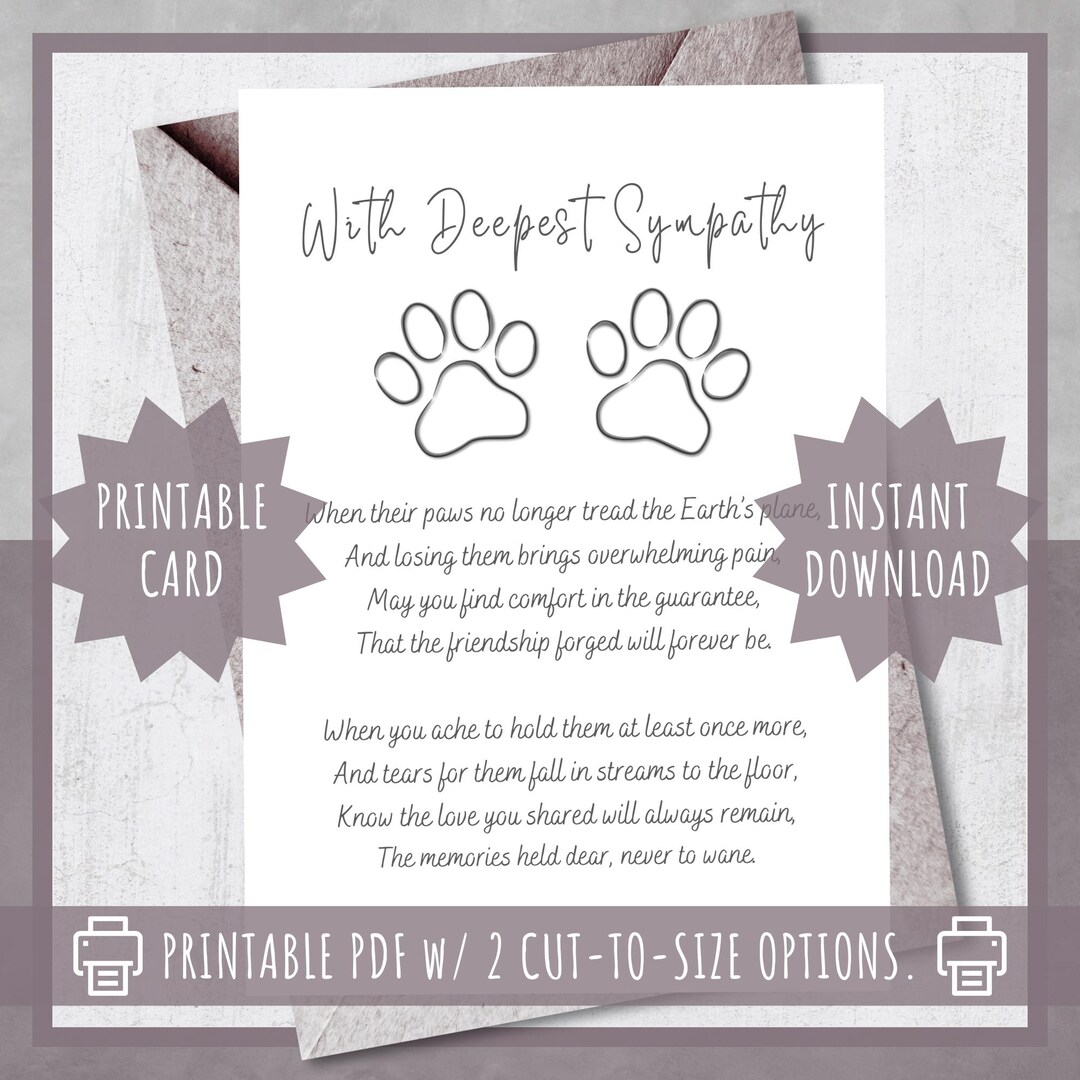 Pet Loss Sympathy Card Printable Animal Lover Condolence Poem Cat/dog
