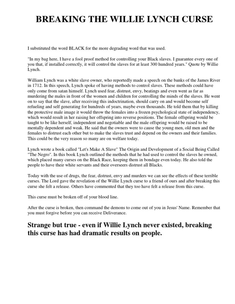 The Willie Lynch Letter Printable Printable And Enjoyable Learning