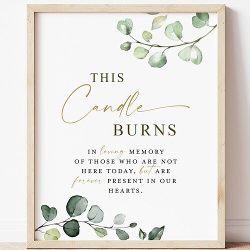 Memorial Table Sign Minimalist Wedding Table Sign This Candle Burns