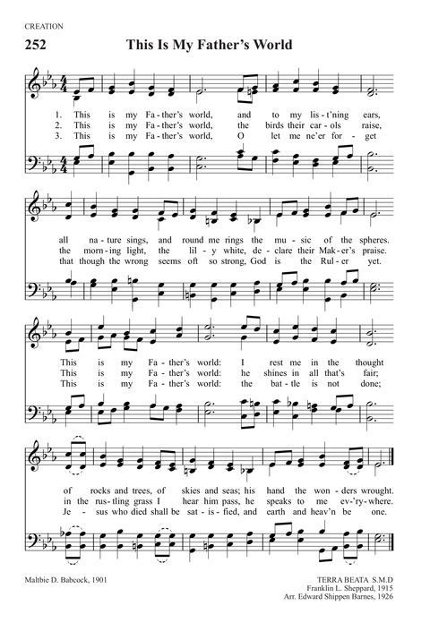 Presbyterian Hymn: This Is My Father #39 s World And To My lyrics and PDF