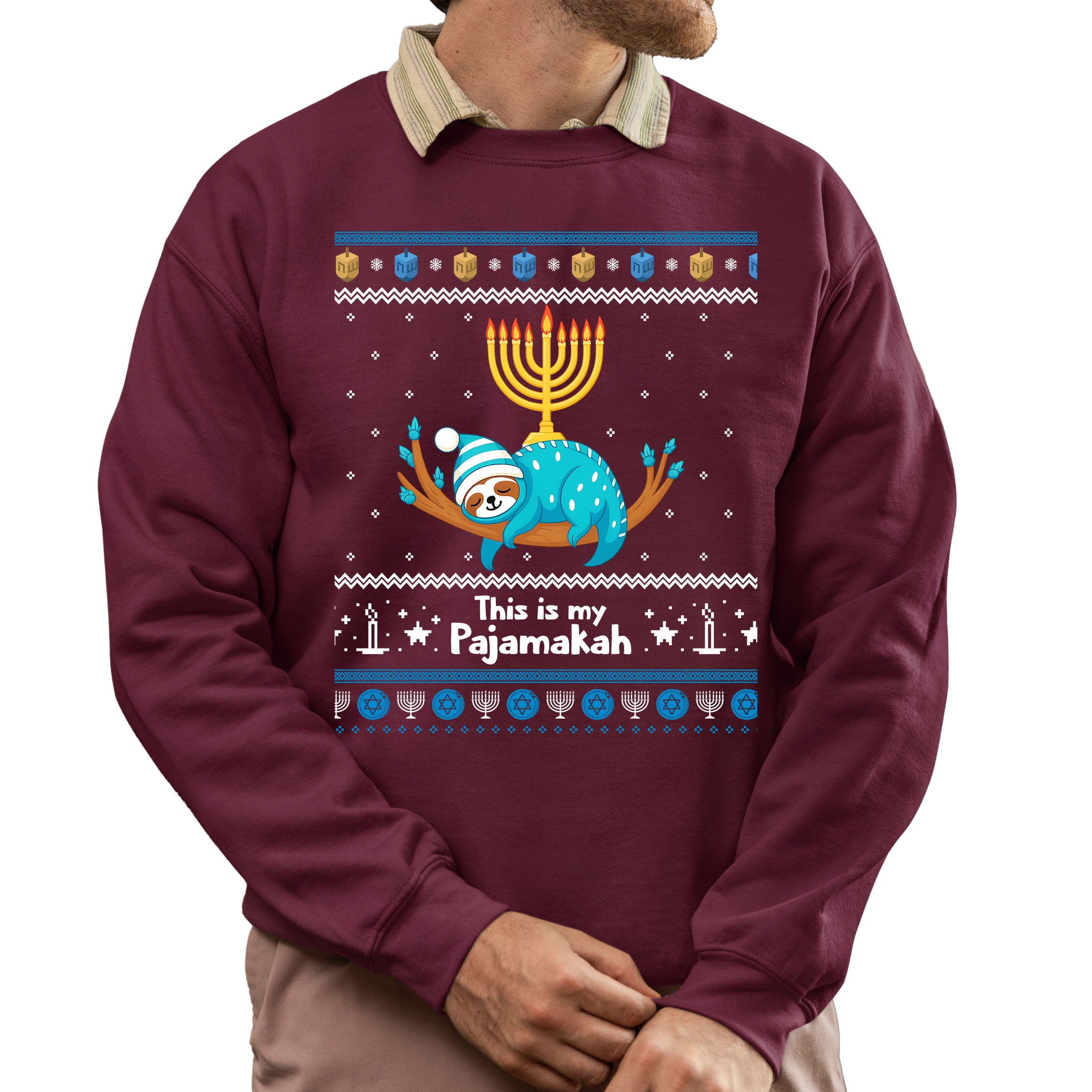 Christmas Sweatshirt This Is My Pajamakah Funny Sloth Hanukkah