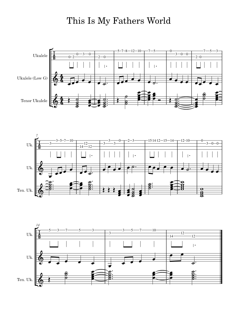 This Is My Fathers World Sheet Music and Tab for Ukulele (Mixed Trio