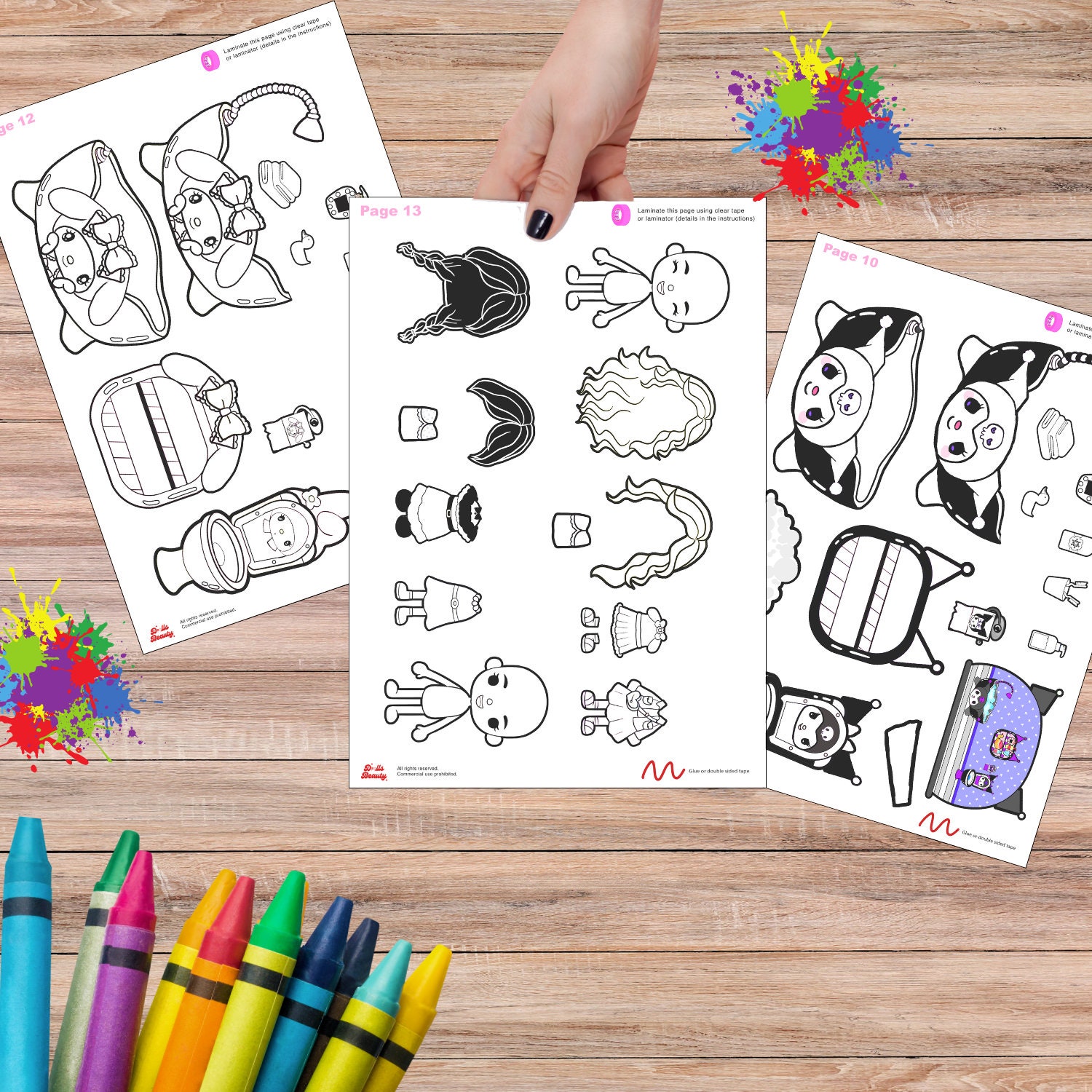 Toca Boca UNCOLORED 3 Pages Paper SLEEPOVER 1 B W Dolls Furniture
