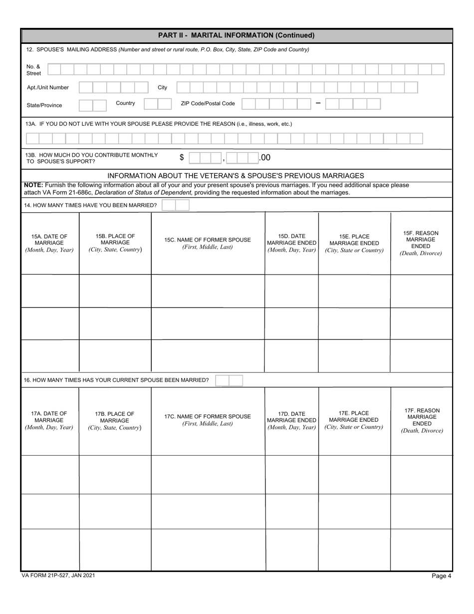 VA Form 21P 527 Download Fillable PDF or Fill Online Income Net Worth