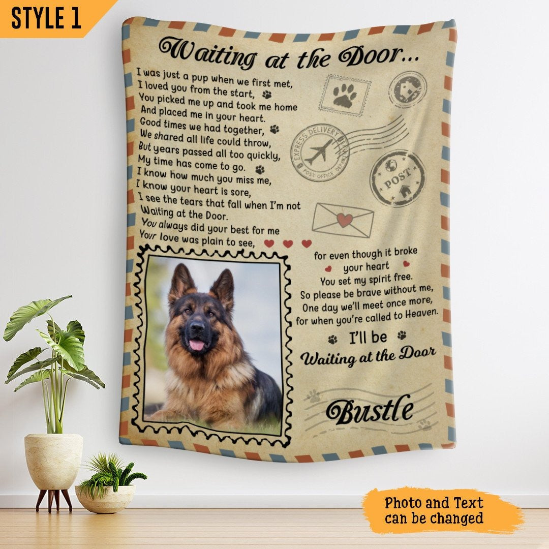Waiting At The Door Dog Poem Custom Dog Memorial Blanket Print