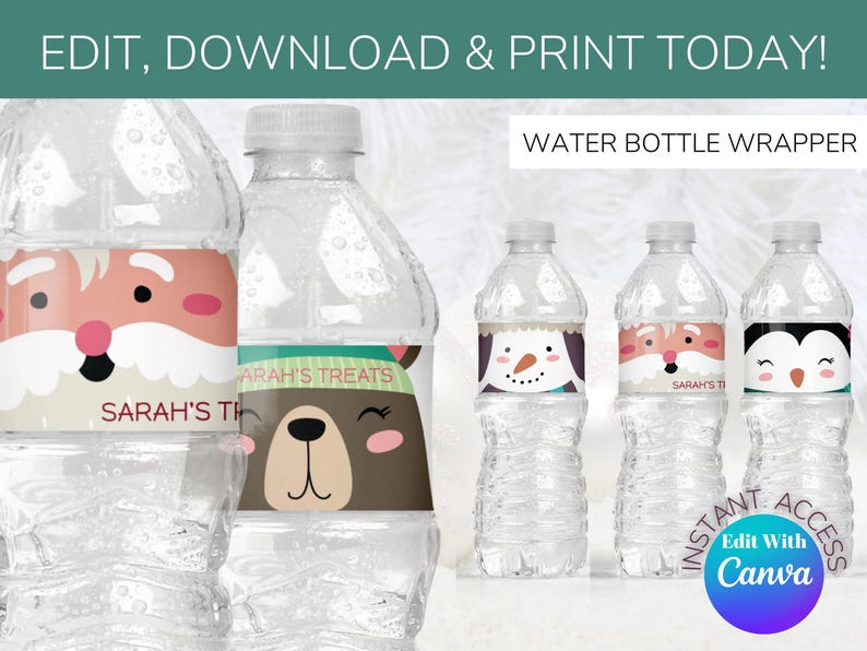 Christmas Water bottle labels printable Water bottle wrappers Xmas