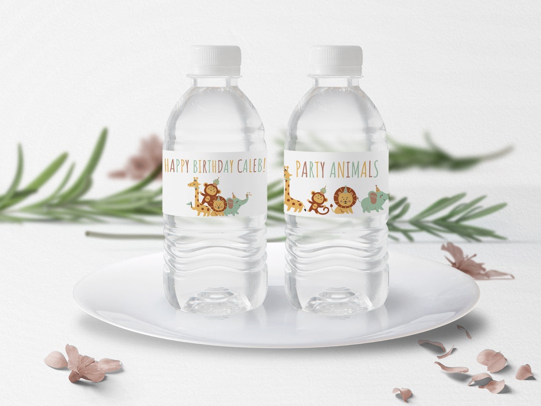 Party Animals Water Bottle Labels Editable Printable (DIY Canva
