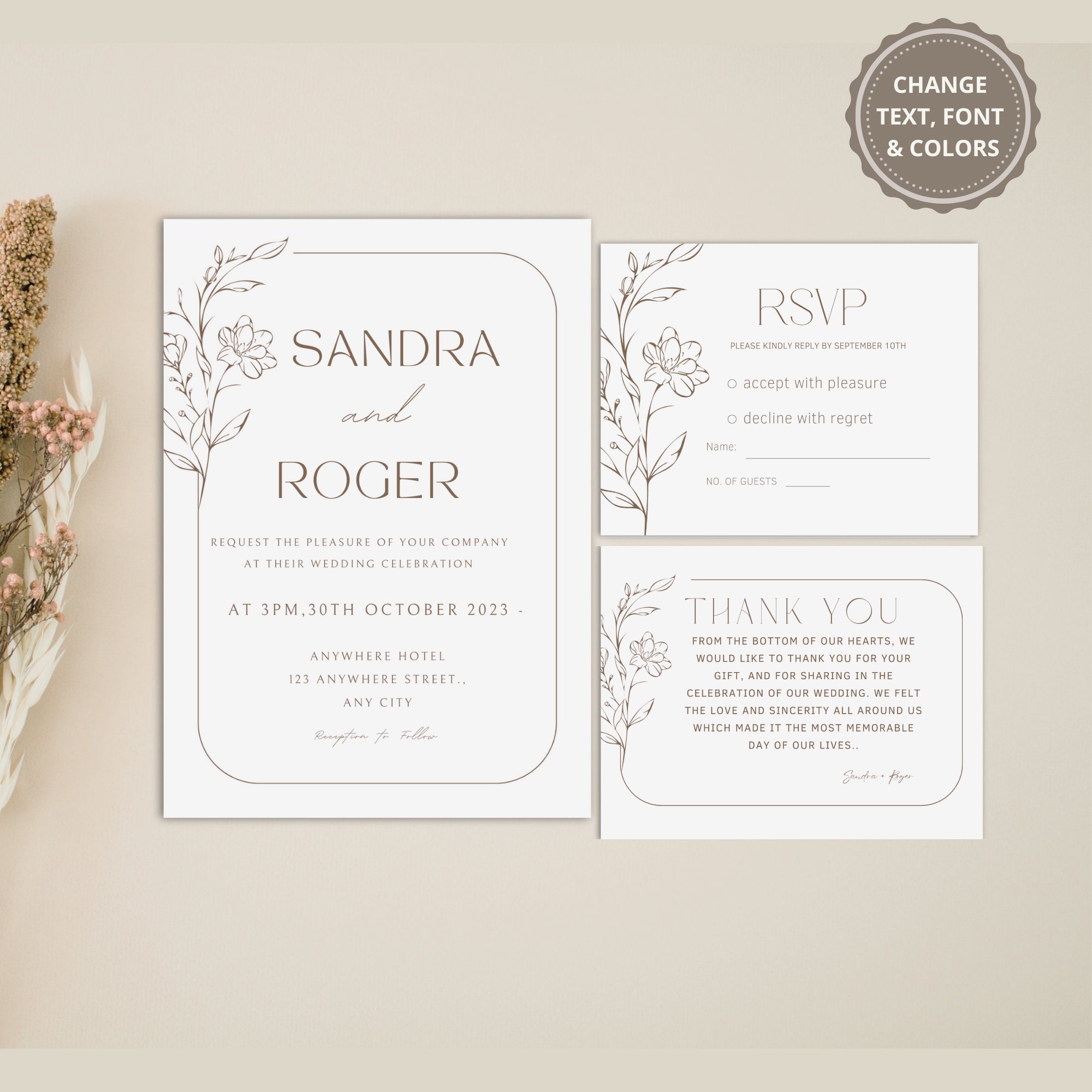 Printable Elegant Wedding Invitation Template Set