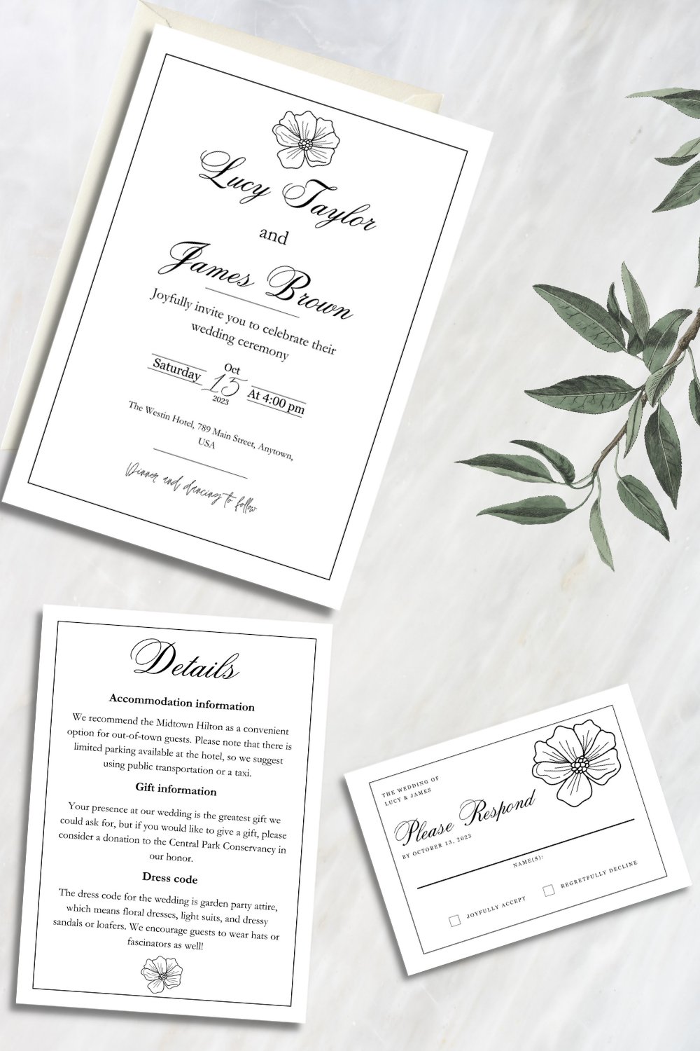 Download Printable Classic Elegant Wedding Invitation Suite PDF