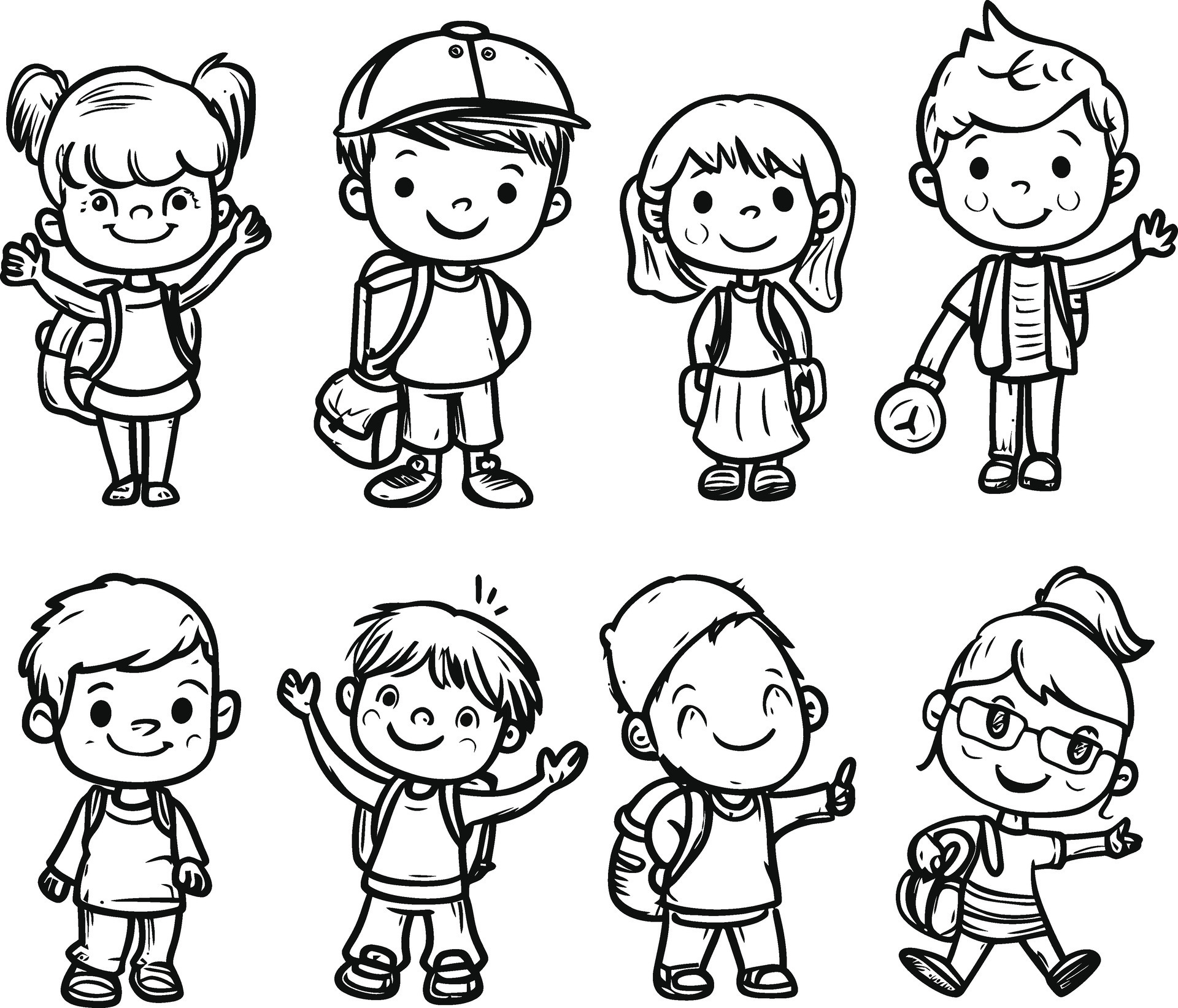 Outlined School Kids Cartoon Characters Different Stock Vector (Royalty