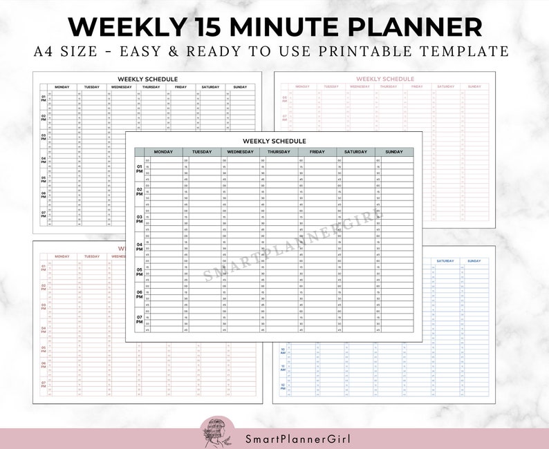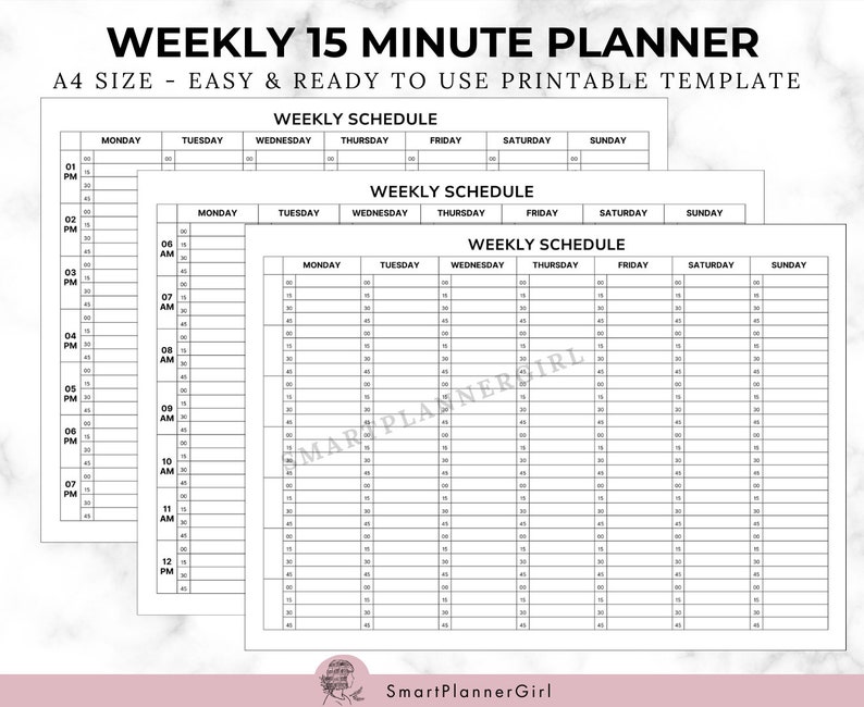 15 Minute Weekly Appointment Planner Printable A4 Weekly Shop Planner