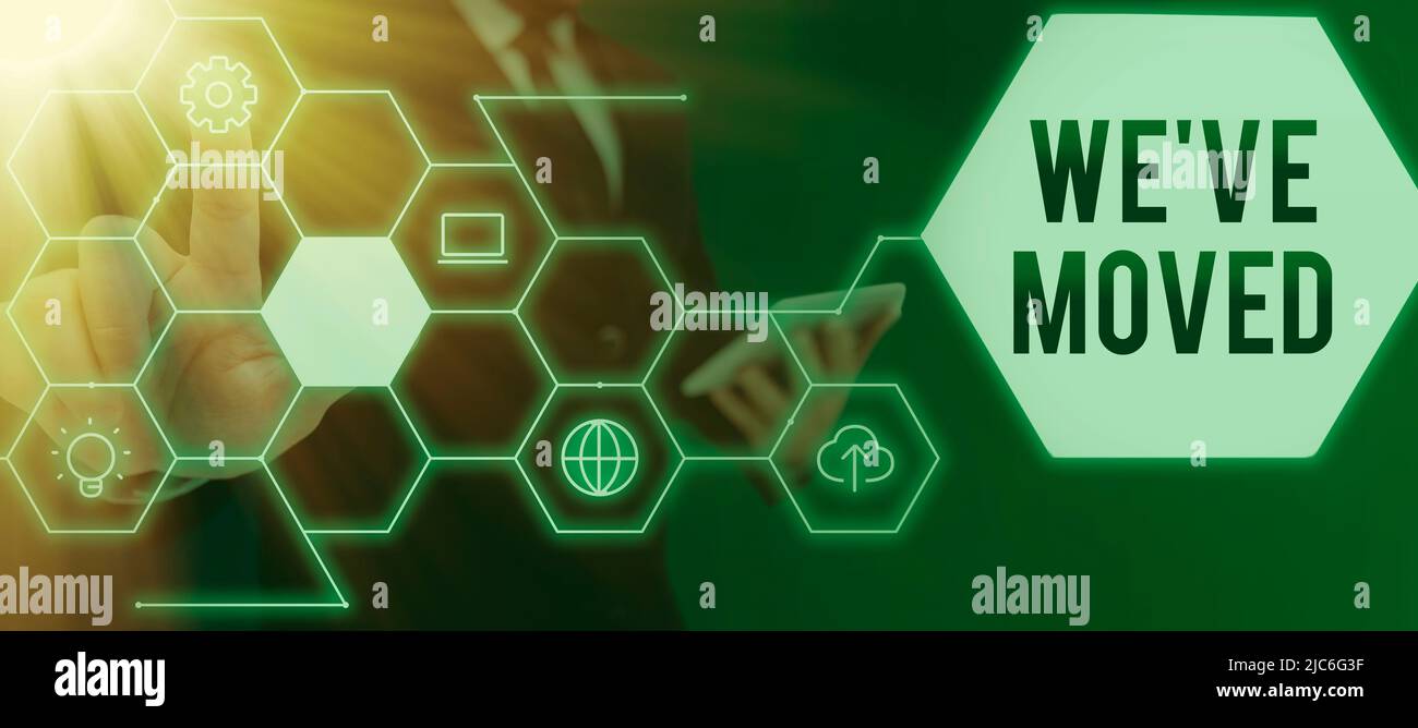 Weve Moved Store Sign Design With Map Pin On White Background High Res
