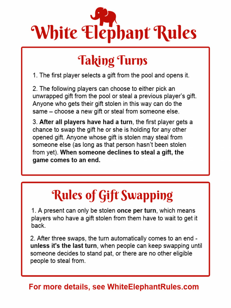 White Elephant Gift Exchange Rules Printable