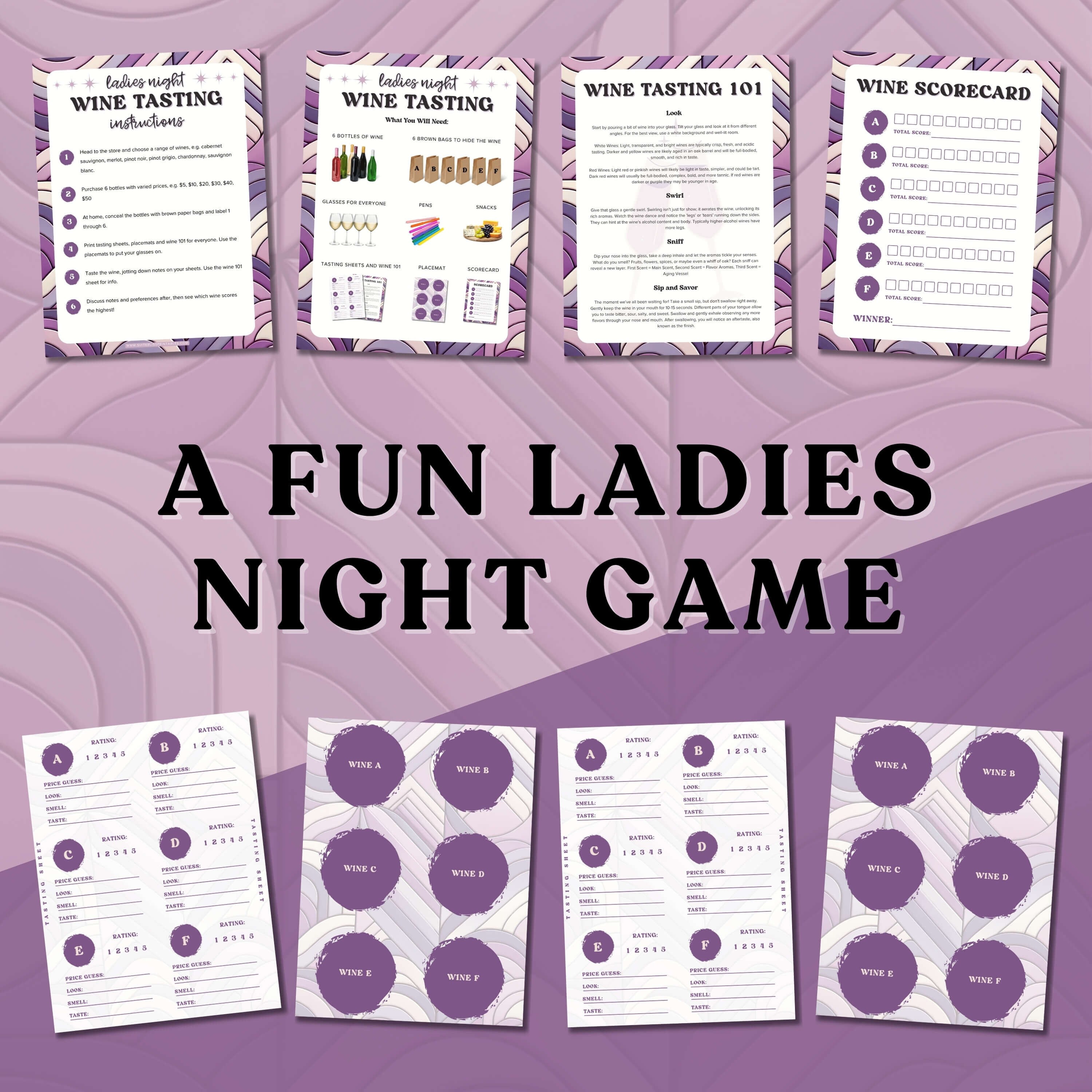 Editable wine tasting party games bingo scorecards tasting guide
