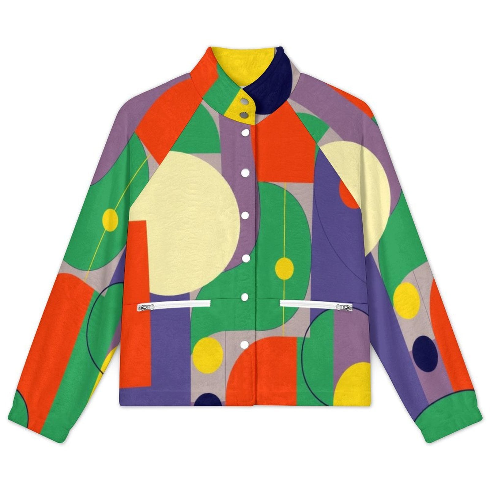 Abstract Colorful Shapes Jacket Women #39 s Stand Collar Warm Outwear