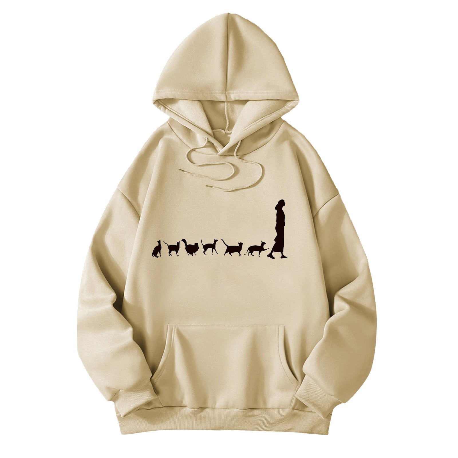 Bibifish Hoodies For Women Cat Graphic Print Hoodies Fall Winter