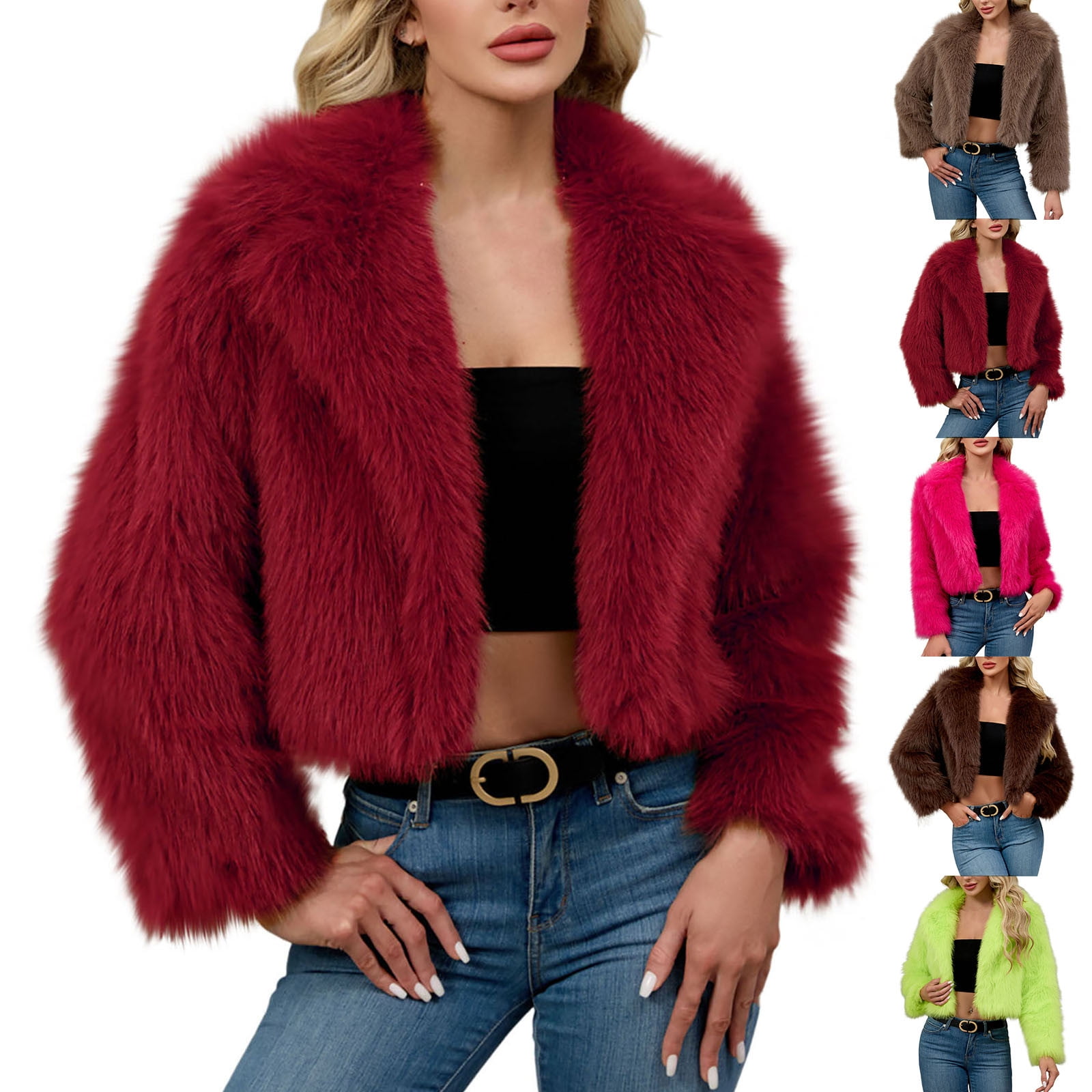 yoeyez Faux Fur Jacket Women Cropped Winter Warm Fuzzy Coats Notched