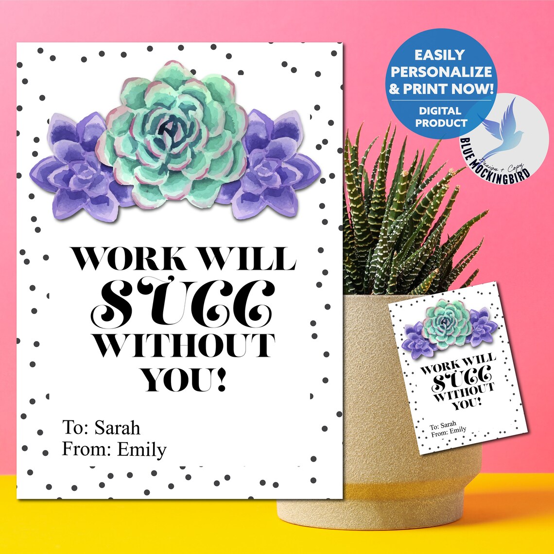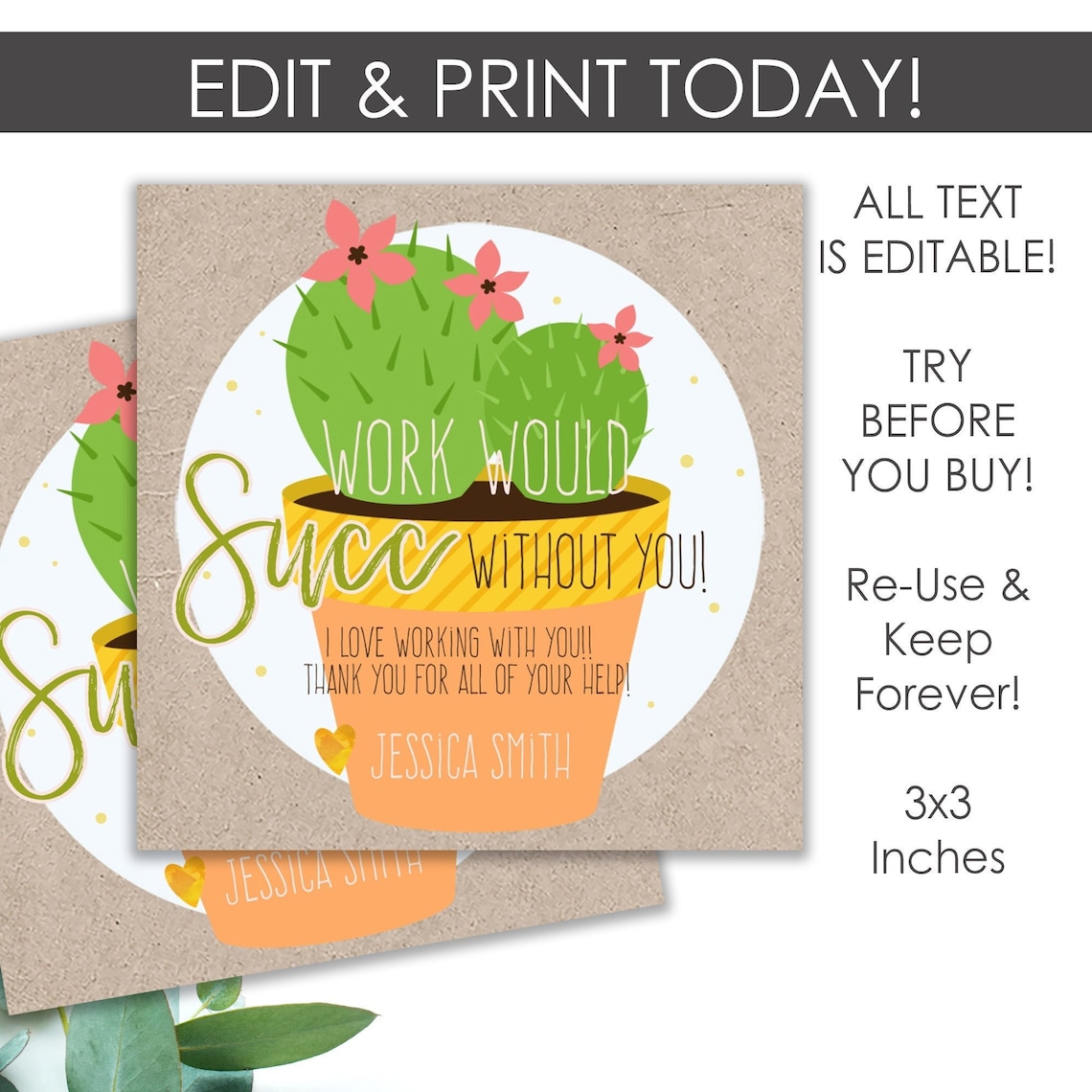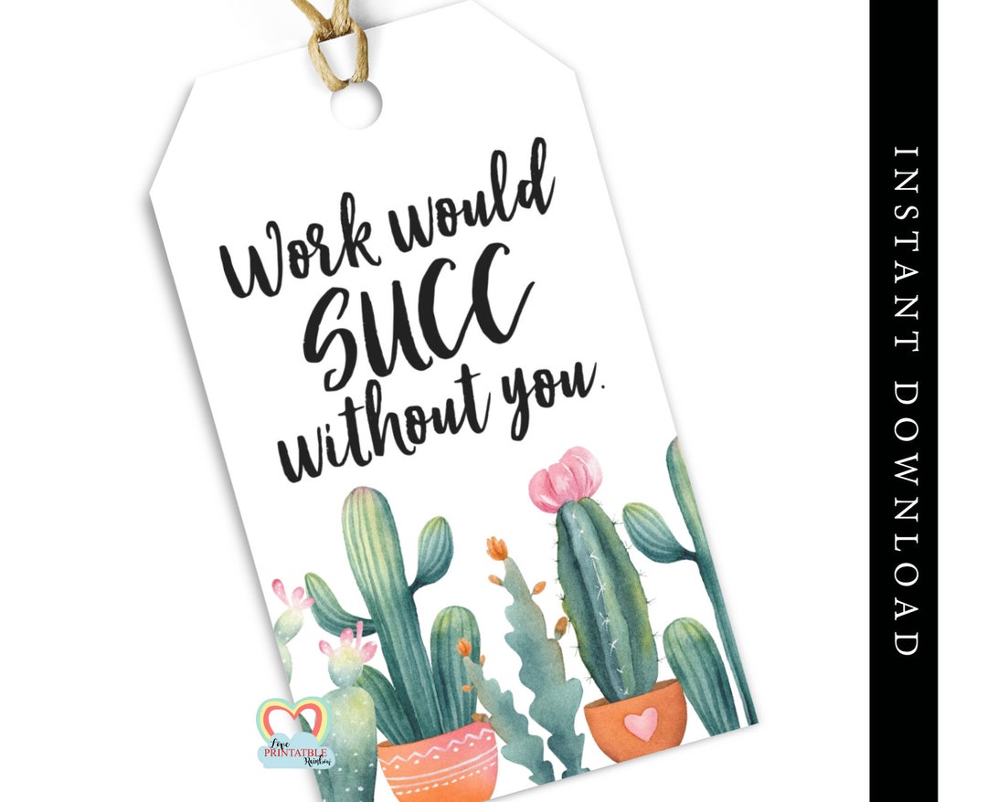 Work Would SUCC Without You Succulent Gift Tag Printable Cactus