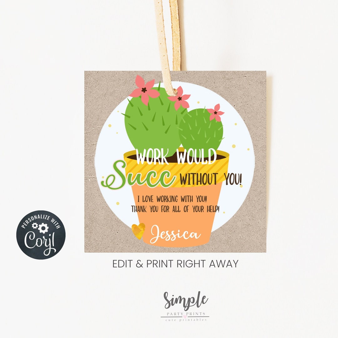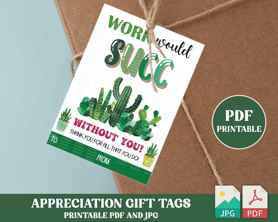 PRINTABLE Work Would SUCC Without You Gift Tags Succulent Puns Gifts