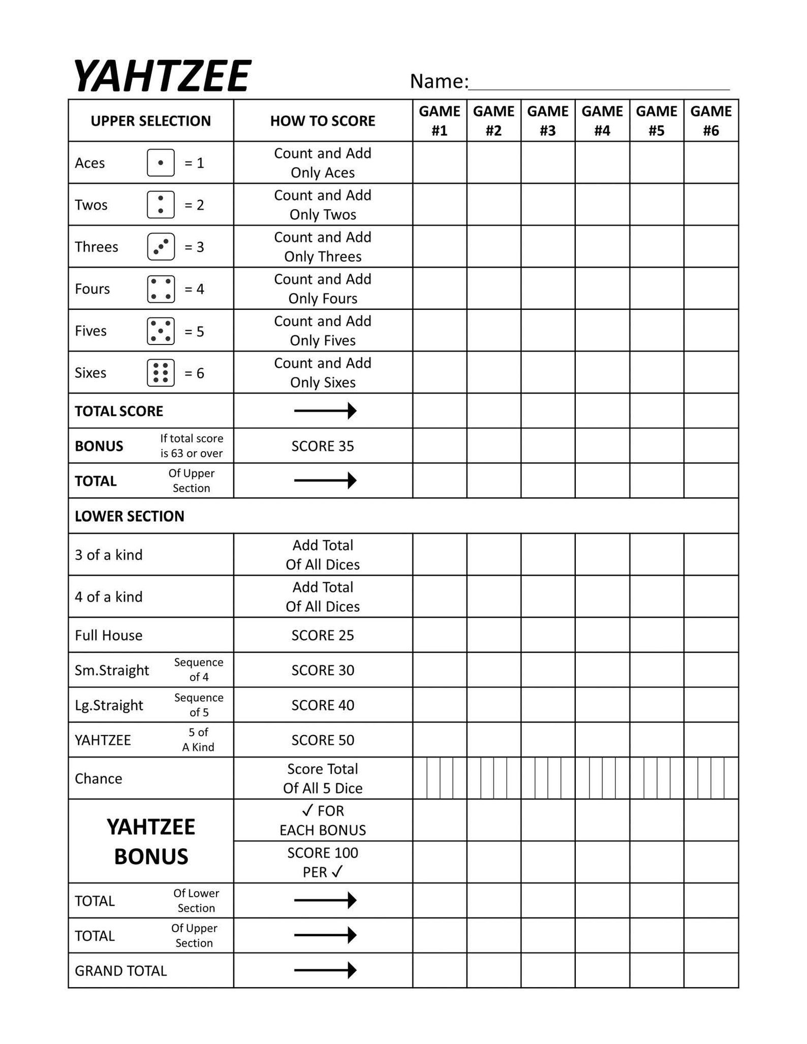 Yahtzee Score Card Sheets Yahtzee Score Sheets