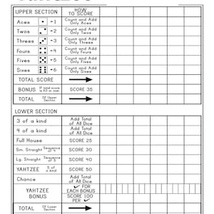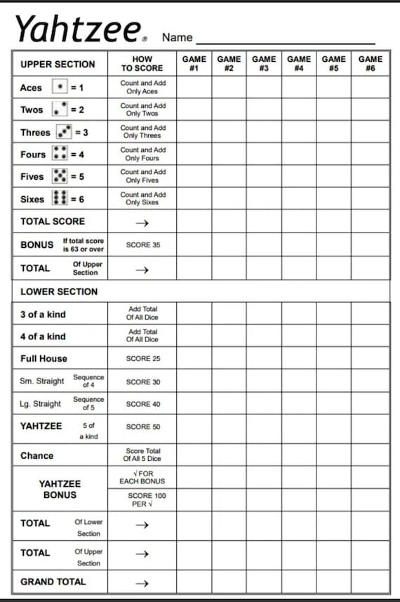 Yahtzee Score Card Printable (8 5x11 PDF Download) Etsy