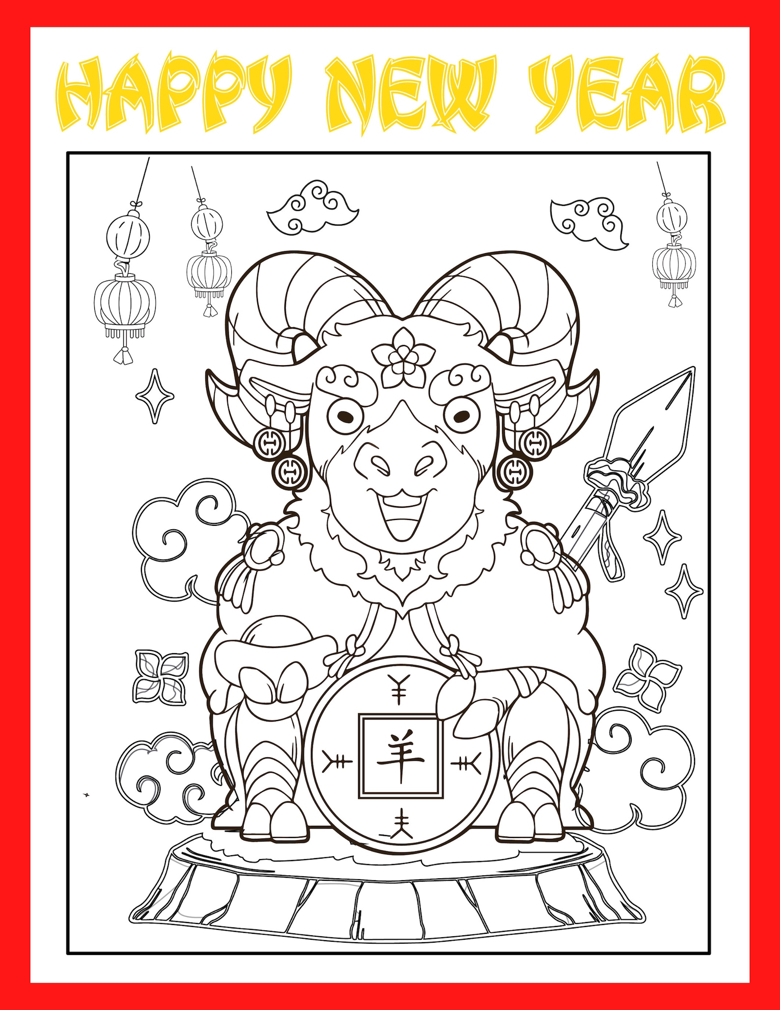 Year of the Rabbit Coloring Printable / Chinese New Year Downloadable